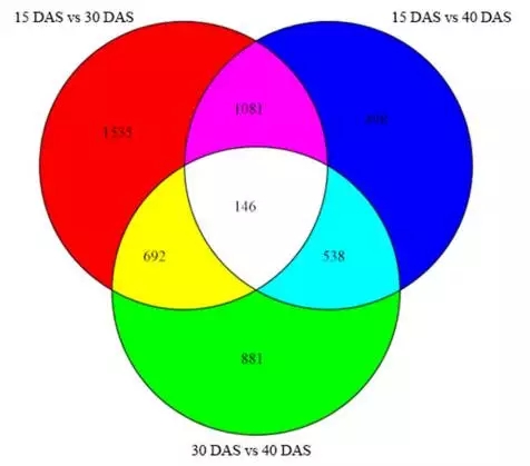 3.為了鑒定在洋蔥球莖膨脹過程中活躍的通路,將得到的unigenes與KEGG數(shù)據(jù)庫中標(biāo)準(zhǔn)參考通路進(jìn)行比對。15 DAS vs. 30 DAS注釋到了95個pathway,15 DAS vs. 40 DAS 注釋到了79個pathway,30 DAS vs. 40 DAS注釋到了86個pathway。共有6113個unigenes注釋到了120條KEGG通路中?!暗矸酆驼崽谴x”構(gòu)成了各樣本文庫中的初級代謝途徑,并有可能在球莖膨大和發(fā)育過程中活性更高。