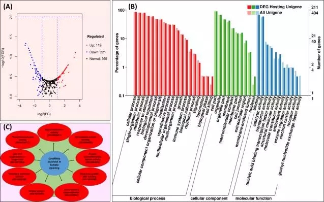 (C):番茄果實成熟過程中circRNA顯著富集的GO terms.