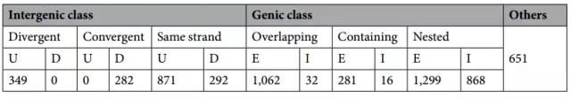 Table 2. 分類非編碼轉(zhuǎn)錄本(U:上游;D:下游;E:外顯子;I:內(nèi)含子)