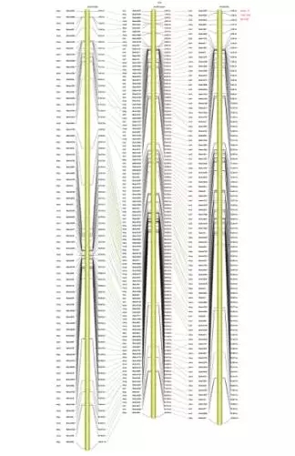 本研究所用的群體類型是F1,149個個體,利用SLAF-seq技術(shù)對樣品進(jìn)行高通量測序開發(fā)分子標(biāo)記。共獲得456,620,260個reads,開發(fā)了114,829個SLAF標(biāo)簽,其中多態(tài)性標(biāo)記25,140個,成功編碼的高質(zhì)量標(biāo)記6359個,采用擬測交的原理構(gòu)建了包含44個連鎖群的遺傳圖譜,總圖距為4,271.43 cM,平均圖距為0.7cM,其中雄性圖包含4201個標(biāo)記,雌性圖包含4396個標(biāo)記,中性圖包含6146個標(biāo)記,同時對構(gòu)建的圖譜進(jìn)行了獨(dú)創(chuàng)性的圖譜評價。