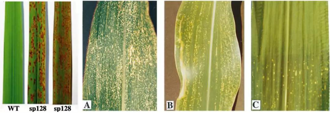 植物類病變(lesion mimic, LM)又稱類病斑,是指在沒有受到任何病原菌侵染的條件下,植物自發(fā)產(chǎn)生壞死斑點(diǎn)。這種局部細(xì)胞的壞死屬于細(xì)胞程序化死亡(PCD),細(xì)胞程序化死亡在植物生長發(fā)育過程中廣泛存在,特別是受到生物或非生物脅迫,當(dāng)受到不相容的病原菌感染時(shí),植物可以在受感染的部位啟動某種形式的PCD,以限制病原體的傳播,這是一種先天性的免疫反應(yīng),稱為超敏反應(yīng)(HR)。HR是植物細(xì)胞為限制病原菌生長而快速死亡的一種方式,其誘導(dǎo)的細(xì)胞死亡可以激發(fā)鄰近組織的防衛(wèi)反應(yīng)(defense response)和植株的系統(tǒng)獲得性抗性(systemic acquired resistance,SAR)。