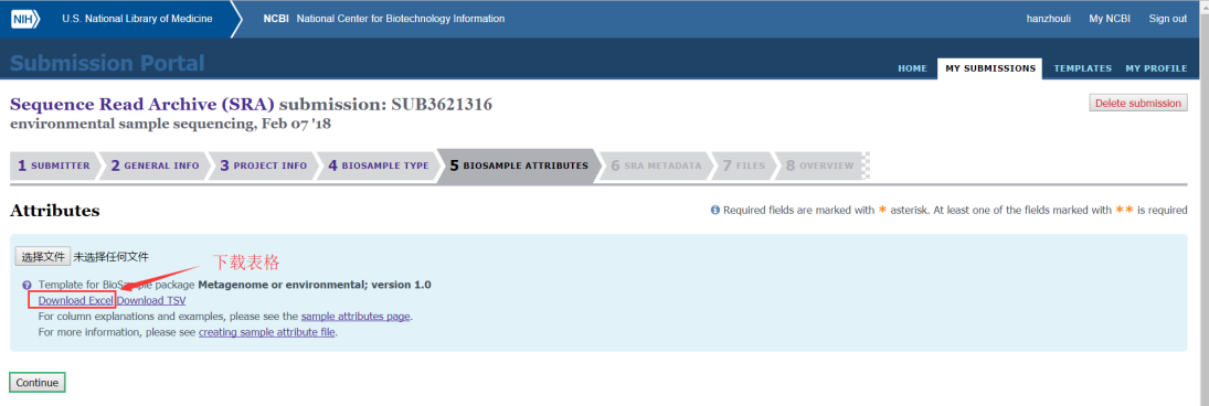 第六步:樣本具體信息,需要我們下載表格填寫,表格中綠色的為必填,藍(lán)色的需要至少填一個(gè),其它內(nèi)容可以選填或者不填寫,如果是生物學(xué)重復(fù)需要添加一列replicate,填寫完成后需要將信息粘貼到文本文件中(TXT格式),然后上傳到網(wǎng)站上;