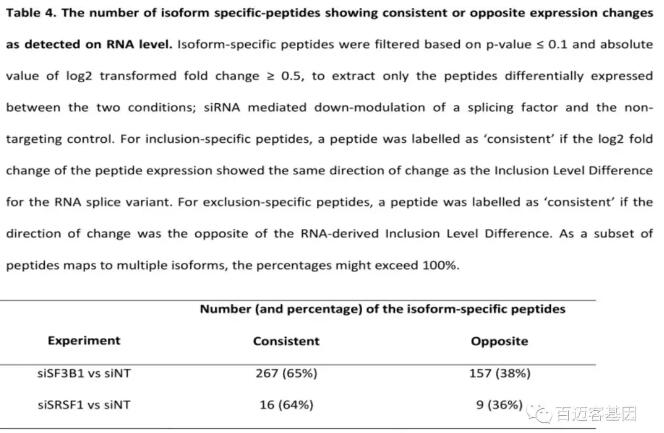Splicify的意義在于識(shí)別RNA水平和蛋白質(zhì)水平上的isoform。通過對RNA和蛋白水平的對比分析證明該方法能夠成功地識(shí)別特定條件下蛋白質(zhì)水平上的異常剪接事件。