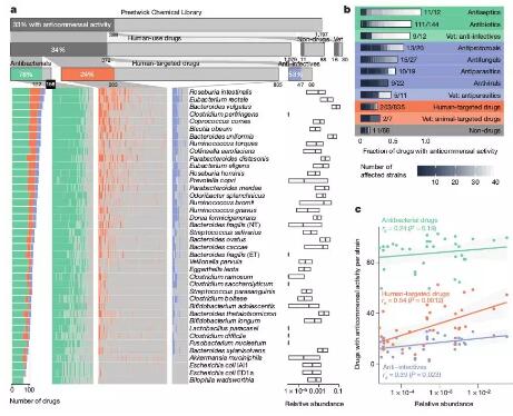 圖1. 上市藥物影響代表性人類腸道菌種的系統(tǒng)分析