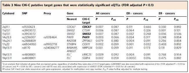 捕獲Hi-C測序鑒定33個乳腺癌風險基因座潛在的110個靶基因