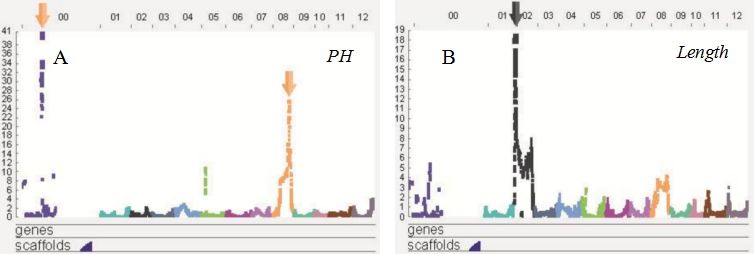 圖2? ? ? A)果實(shí)酸度和? ? ?B)果實(shí)長度定位結(jié)果展示