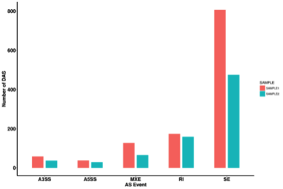 ????????通過rMATS軟件分析獲得獲得不同分組之間的差異可變剪接事件。