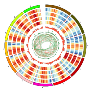 ????????通過Circos圖可以直觀比較基因組和三代測序結(jié)果中基因密度、轉(zhuǎn)錄本密度,以及l(fā)ncRNA和融合轉(zhuǎn)錄本在染色體分布。