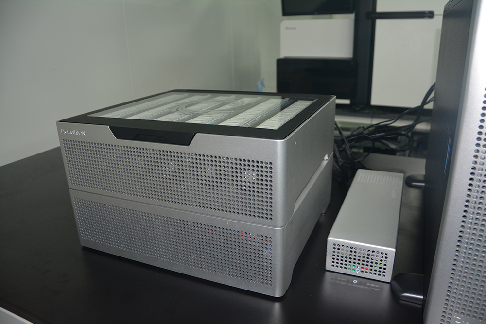 ????????2018年8月7日,Oxford Nanopore產(chǎn)品中的PromethION平臺已抵達北京百邁客測序?qū)嶒炇?。截止目前,百邁客已經(jīng)擁有Oxford Nanopore的MinION、GridION X5和PromethION全套Nanopore測序儀,投資金額超過3000萬人民幣。PromethION作為Oxford Nanopore產(chǎn)品中的平臺,在設(shè)計不僅具備了實時、長讀長、直接測序等特點,在產(chǎn)量上還可能與市場上傳統(tǒng)測序儀相匹敵。在2018年初,Oxford Nanopore官方宣布單張PromethION測序芯片的數(shù)據(jù)產(chǎn)出超過150 Gb。而實際上,使用臨床樣本、植物樣本以及測試樣本的用戶也能夠獲得單張芯片100 Gb 的產(chǎn)出。作為Oxford Nanopore的重要合作伙伴,百邁客將基于PromethION/GridION平臺為客戶提供商業(yè)測序服務(wù)。