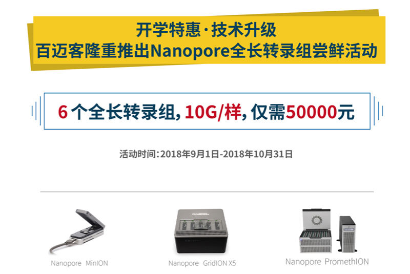 百邁客已與牛津納米孔公司(Oxford Nanopore Technologies,ONT)達(dá)成長期合作,目前擁有MinION、GridION X5和PromethION三種型號全套測序儀,致力于將測序技術(shù)提供給科研者。