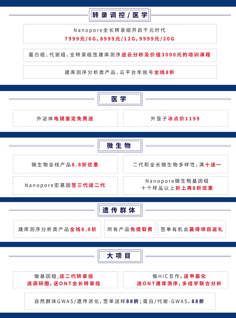 2018年即將結(jié)束,百邁客年末促銷活動正在火熱進(jìn)行中!我們會為您設(shè)計實驗方案和最實惠的價格套餐;如果您的材料需要準(zhǔn)備,經(jīng)費即將到期,或項目有結(jié)余款項,可以考慮預(yù)付款的方式,我們也設(shè)計了多種預(yù)付款政策供您選擇,等待樣品準(zhǔn)備。我們多樣化的平臺及配套服務(wù),一定可以滿足您的需要。