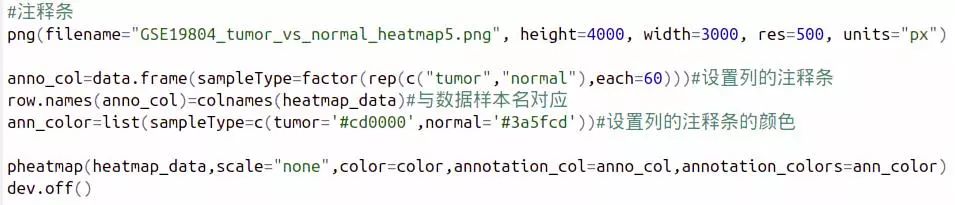 • annotation_col:數(shù)據(jù)框格式,用來定義熱圖所在列的注釋條