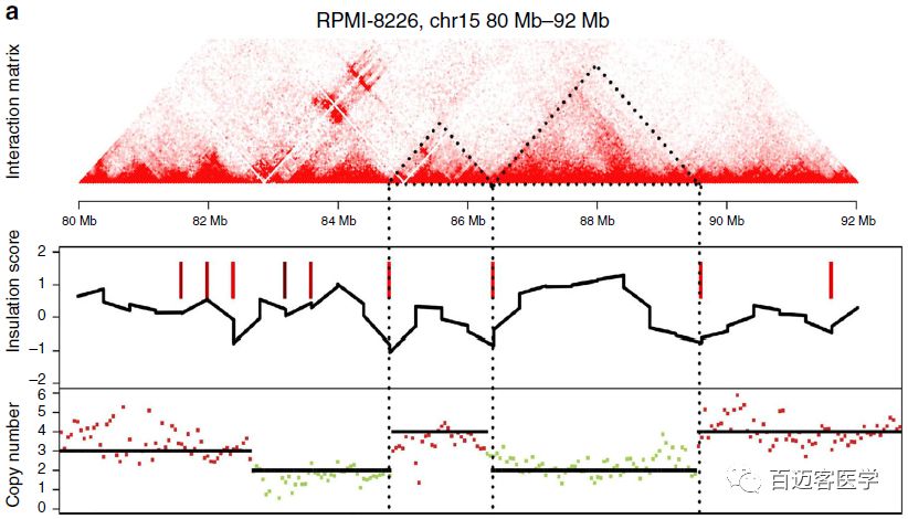 作者通過(guò)Hi-C對(duì)MM的三維基因組進(jìn)行了研究,并聯(lián)合WGS、RNA-seq、Chip-seq分析了三維結(jié)構(gòu)(compartment、TAD)、CNV、易位和基因表達(dá)之間的關(guān)系,從而識(shí)別MM相關(guān)的通路和關(guān)鍵基因。這些發(fā)現(xiàn)拓展了對(duì)MM的發(fā)生機(jī)制以及非整倍體癌癥基因組的空間無(wú)序性的認(rèn)識(shí),對(duì)MM的臨床治療和藥物開(kāi)發(fā)有一定的啟示。