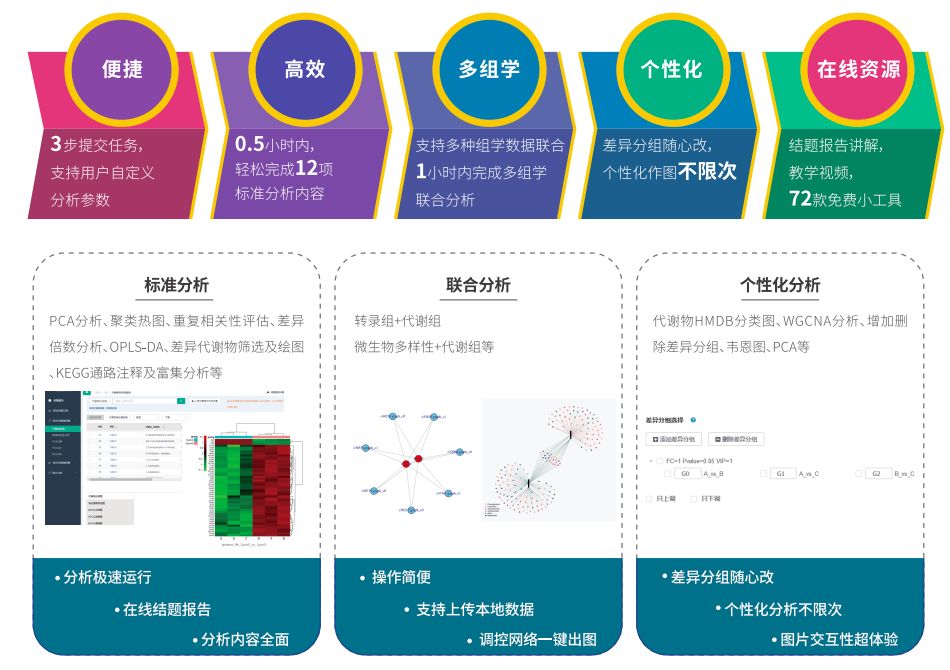 百邁客云提供專業(yè)的生信分析平臺(http://www.biocloud.net/),新上線的代謝組云APP兼具標(biāo)準(zhǔn)分析、聯(lián)合分析和個性化分析功能,同時海量在線資源以供學(xué)習(xí)和使用。