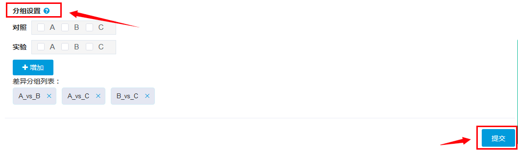 在進(jìn)行分組設(shè)置時,我們可以自由添加分組,設(shè)置自己的組名,并在組名之后添加用于差異分析的樣品。