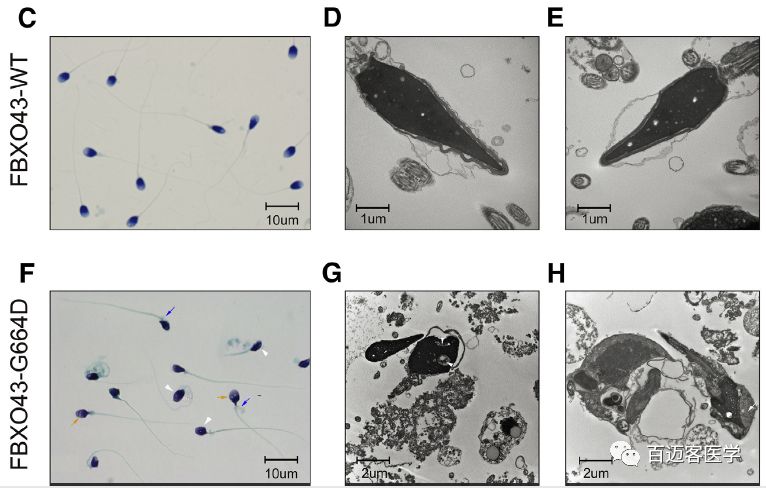 為了評估更廣泛人群中FBXO43的突變,對散發(fā)不孕患者和未受累對照進(jìn)行了FBXO43基因突變篩查。所有散發(fā)不孕的患者均為甘肅省漢族人。主要的異常是無定形精子頭,具有可變比例的空泡和過剩的殘留細(xì)胞質(zhì)。其他精液參數(shù)因不同患者而異,包括不同的精子濃度水平(41.61±32.48×106/ml)和不同精子活力(45.397%±22.83%)。