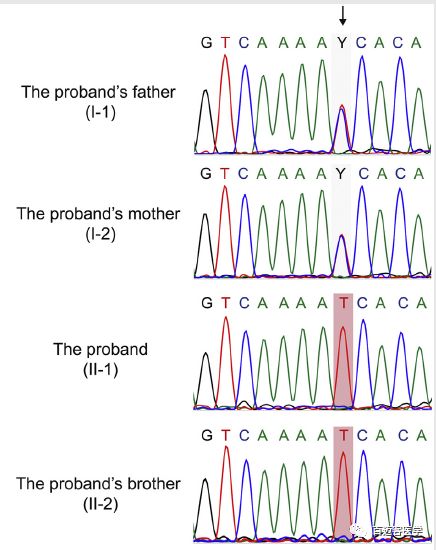 對兩兄弟及其父母進(jìn)行了全外顯子組測序WES,平均覆蓋深度為120×,目標(biāo)區(qū)域覆蓋度為99.87%。排除在任何變異數(shù)據(jù)庫中MAF>0.05的變異,錯義突變、無義突變、移碼突變和剪接位點(diǎn)突變等優(yōu)先保留。此外,SIFT、PolyPhen-2和Mutation Taster等同時預(yù)測為具有潛在有害性的變異也被保留用于進(jìn)一步評估。