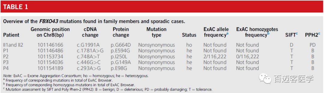 2、WES鑒定FBXO43 C1991T純合突變