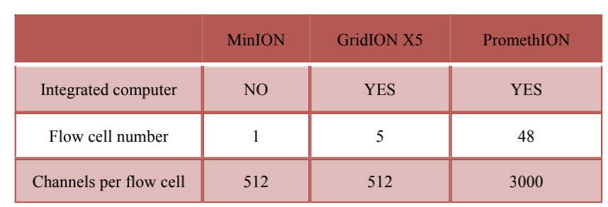 ONT平臺:MinION、GridION X5、PromethION;具體區(qū)別如下: