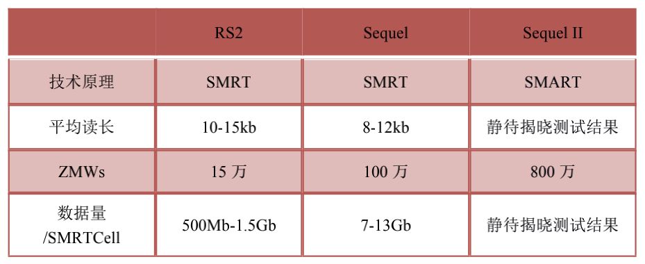 PB平臺:RSII和Sequel系列儀器,目前Sequel系列平臺測序通量高、單Gb數(shù)據(jù)成本低、周期短的特點(diǎn)已將RSII平臺取代。
