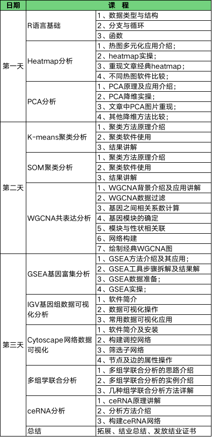 隨著測序技術(shù)的發(fā)展及測序成本的降低,轉(zhuǎn)錄組分析逐漸發(fā)展成為一項(xiàng)基礎(chǔ)的分析方法。越來越多的科研項(xiàng)目中使用轉(zhuǎn)錄組數(shù)據(jù)分析來做為分析的支持手段之一。為了協(xié)助科研工作者對(duì)轉(zhuǎn)錄組測序數(shù)據(jù)進(jìn)行深度挖掘,本次培訓(xùn)將從常用的個(gè)性化分析軟件操作入手,帶領(lǐng)大家學(xué)習(xí)轉(zhuǎn)錄組分析中常用的分析方案及實(shí)現(xiàn)方法,從而滿足文章后期發(fā)表的需求,同時(shí)也為我們生物信息科學(xué)工作者們提供一個(gè)互相交流的平臺(tái)。