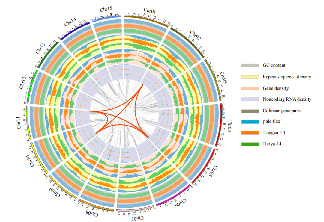 基因組組裝材料:油用亞麻Longya-10;纖維用亞麻Heiya-14;白亞麻pale flax