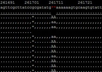 5.?通過(guò)將20?x?CCS數(shù)據(jù)分別回比到10 x PacBio CCS polish及100 x Nanopore+50 x Illumina Polish后基因組,截取基因組上特性區(qū)域,進(jìn)行組裝基因組單堿基準(zhǔn)確性的比對(duì)與評(píng)估,發(fā)現(xiàn)10?x?PacBio CCS polish后的結(jié)果提升效果明顯,我們挑選了幾個(gè)實(shí)例如下:
