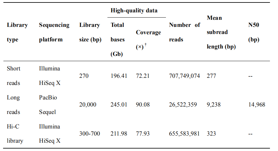 表1 中國真蛸基因組測(cè)序數(shù)據(jù)