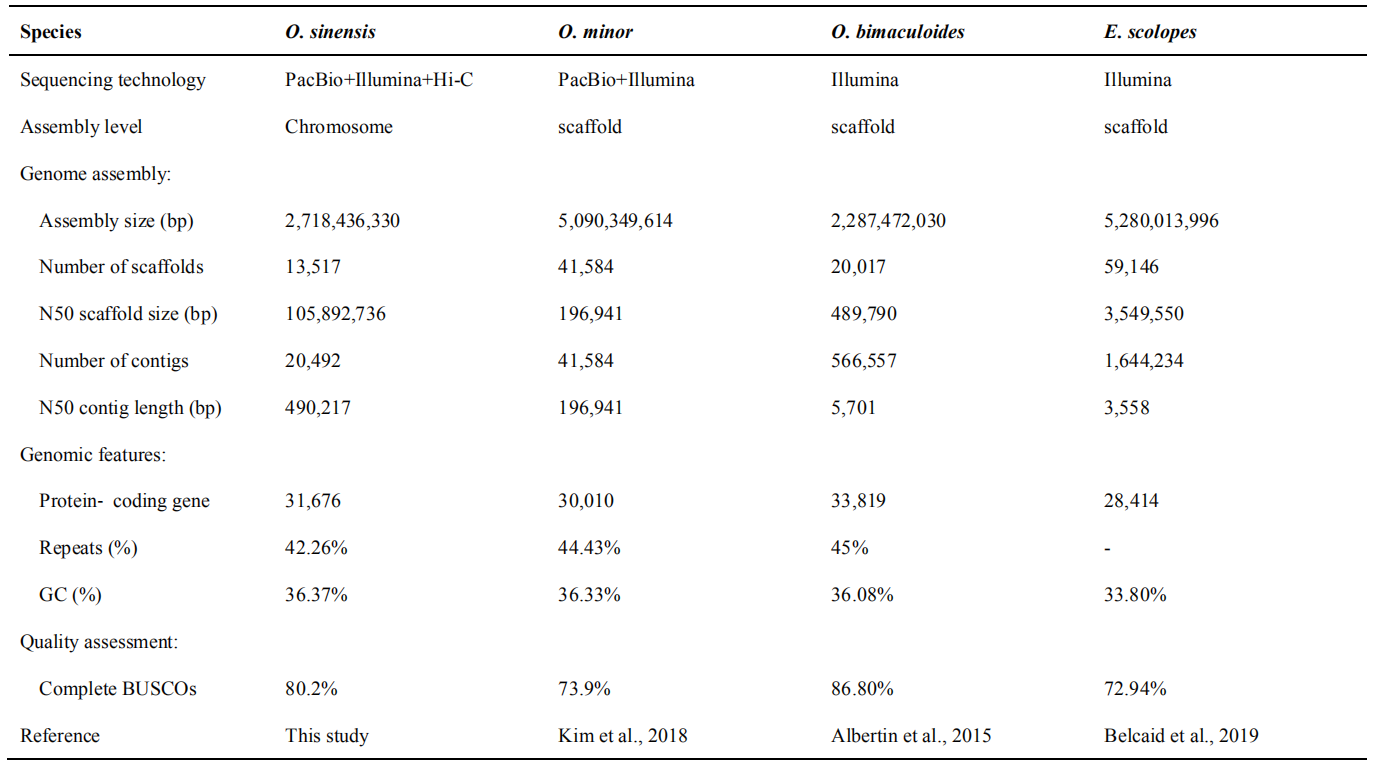 中文題目:基于PacBio測(cè)序和Hi-C技術(shù)的中國真蛸(Octopus sinensis)染色體水平基因組組裝