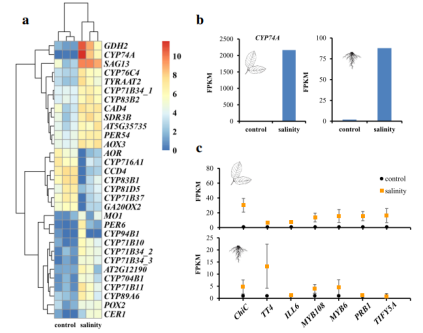 研究結(jié)果:轉(zhuǎn)錄組研究分析發(fā)現(xiàn)編碼幾丁質(zhì)酶的基因和參與 JA 生物合成途徑的基因可能有助于開(kāi)心果適應(yīng)鹽水環(huán)境。