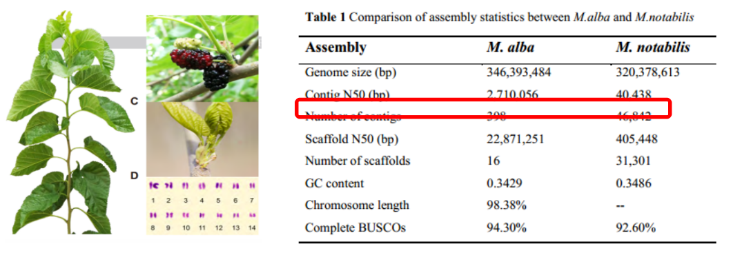 基因組組裝結(jié)果:組裝基因組大小339 Mb;Contig N50=9.52 Mb;