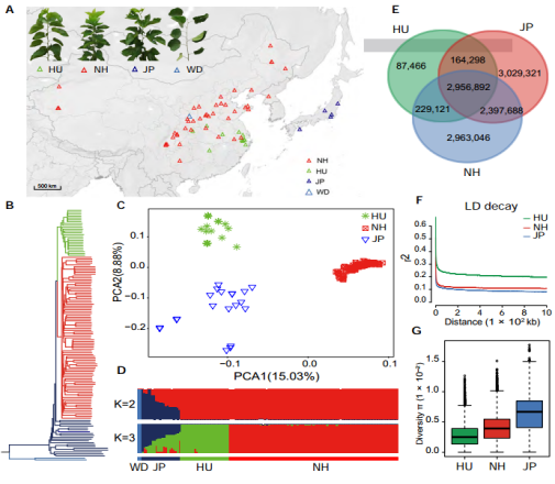 群體進(jìn)化研究:群體材料選擇(重測(cè)序:~15.6X):134份桑樹(shù)種質(zhì)(132份栽培種,來(lái)自中國(guó)和日本;2份野生種,來(lái)自中國(guó)陜西);