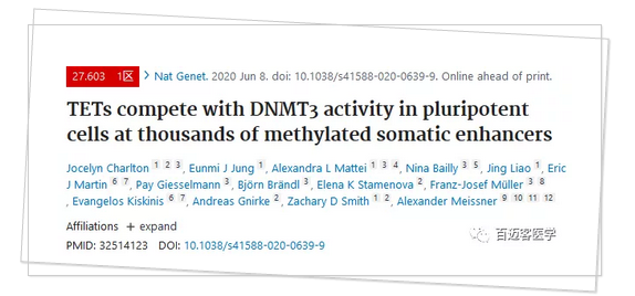 Charlton J, Jung EJ, Mattei AL, et al. TETs compete with DNMT3 activity in pluripotent cells at thousands of methylated somatic enhancers [published online ahead of print, 2020 Jun 8].?Nat Genet. 2020;10.1038/s41588-020-0639-9. doi:10.1038/s41588-020-0639-9