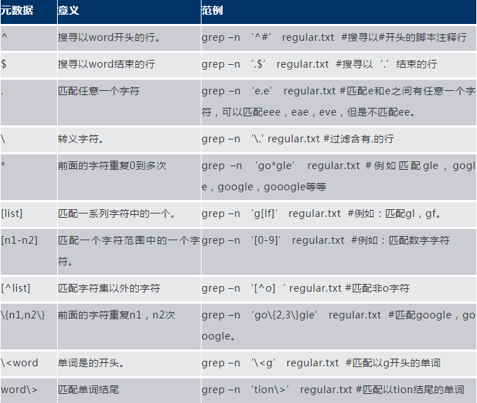 grep一般情況下支持基本正則表達式,可以通過參數(shù)-E支持擴展正則表達式,另外grep單獨提供了一個擴展命令叫做egrep用來支持擴展正則表達式,這條命令和grep -E等價。雖然一般情況下,基本正則表達式就夠用了,以下為最常用的幾個命令