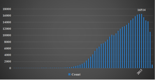 二代轉(zhuǎn)錄組測序已經(jīng)如火如荼的開展了近十幾年,關(guān)于mRNA研究的文章也呈爆發(fā)式的發(fā)展,但是最近幾年單純的mRNA檢測似乎不再那么吃香了。我們來看一組數(shù)據(jù),下圖是Pubmed數(shù)據(jù)庫中檢索mRNA得到的相關(guān)的文獻(xiàn)信息,數(shù)據(jù)顯示2015年時普通mRNA文獻(xiàn)已經(jīng)達(dá)到峰值,隨后關(guān)于mRNA的文章開始有下滑的趨勢。