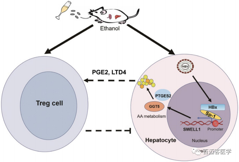 文章題目:Chronic ethanol consumption and HBV induce abnormal lipid metabolism through HBx/SWELL1/arachidonic acid signaling and activate Tregs in HBV-Tg mice