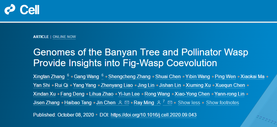 2020年10月8日,福建農(nóng)林大學(xué)基因組與生物技術(shù)中心聯(lián)合中國(guó)科學(xué)院西雙版納熱帶植物園等多個(gè)單位共同合作的榕-蜂協(xié)同進(jìn)化研究成果以“Genomes of the banyan tree and pollinator wasp provide insights into fig-wasp coevolution”為題在國(guó)際期刊Cell上在線發(fā)表。文中利用北京百邁客生物科技有限公司的Hi-C建庫(kù)測(cè)序技術(shù),并結(jié)合明瑞光課題組獨(dú)立研發(fā)的ALLHiC算法成功的將小葉榕和對(duì)葉榕組裝至染色體水平,并對(duì)榕樹(shù)氣生根、性別決定基因、榕樹(shù)進(jìn)化以及榕蜂共生體系專(zhuān)性協(xié)同進(jìn)化等進(jìn)行研究。該研究為明瑞光教授團(tuán)隊(duì)繼18、19年連續(xù)兩年論文刊登期刊Nature Genetics[1-2]后的又一次突破性成果!