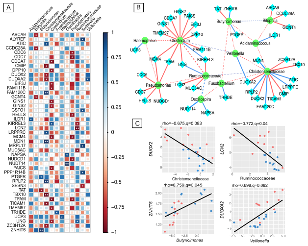 圖2結(jié)腸直腸癌相關(guān)基因與腸道粘膜微生物之間的相互作用