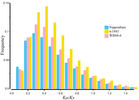 ?雜草稻基因?qū)a/Ks值的頻率分布