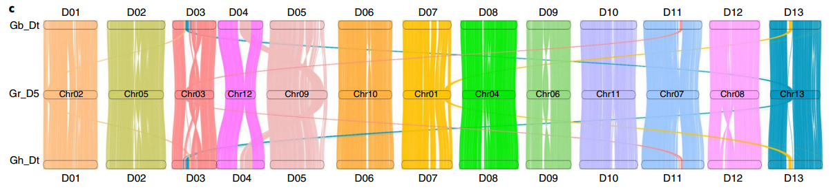 陸地棉和海島棉D(zhuǎn)亞基因組與雷蒙德氏棉(DD型)基因組共線性分析