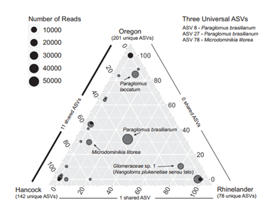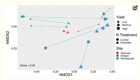 通過對在威斯康星州柳枝稷的三個生產(chǎn)地點(diǎn)AMF的研究,發(fā)現(xiàn)施氮量對柳枝稷AMF的組成和多樣性沒有一致的影響。此外,本研究中闡明的ASV在理論上代表了柳枝稷土壤中存在的√確、活的基因型。在對AMF物種劃分和種內(nèi)功能多樣性缺乏分類共識的情況下,ASVs可作為一致的序列標(biāo)識,為未來尋求AMF功能和生物地理學(xué)的研究以及區(qū)域適應(yīng)AMF接種的生物勘探提供參考。