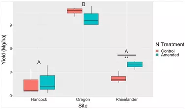 在萊茵蘭德試驗(yàn)區(qū),與對照試驗(yàn)區(qū)相比,施氮提高了柳枝稷的產(chǎn)量,但是在其他2個地區(qū)中沒有發(fā)現(xiàn)顯著差異;