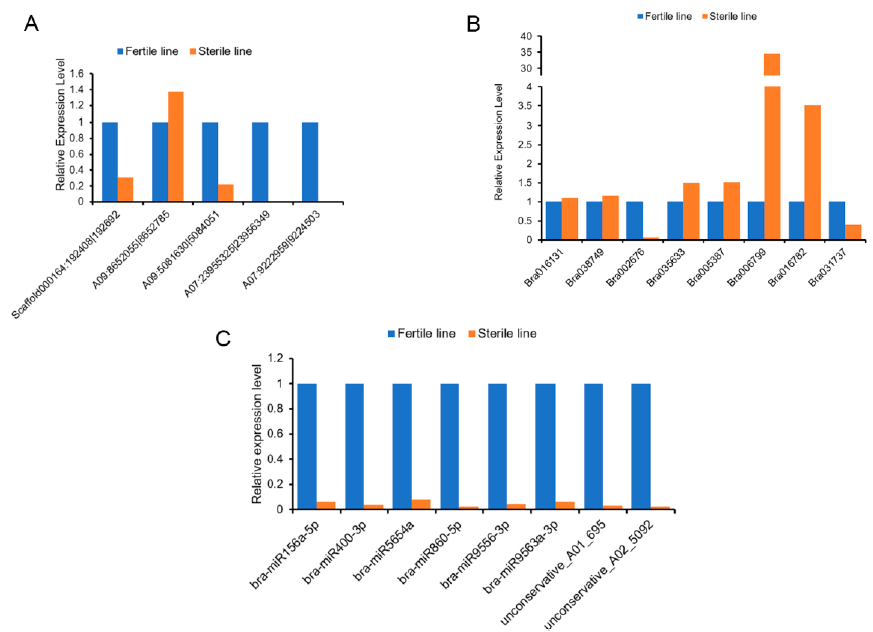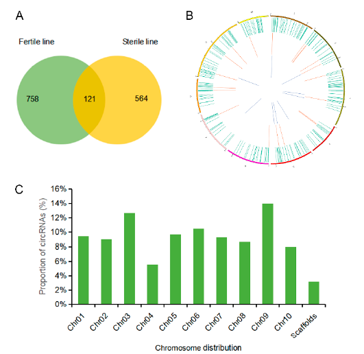 在以往的研究中,CircRNA作為內(nèi)源非編碼RNA的一員,被認(rèn)為具有miRNA海綿和競爭性內(nèi)源RNA(ceRNA)功能。關(guān)于CircRNA在雄性不育和花藥發(fā)育中研究較少,因此作者在油菜中構(gòu)建了細(xì)胞質(zhì)雄性不育系(CMS),對(duì)不育系和可育系花蕾進(jìn)行全轉(zhuǎn)錄組測(cè)序,揭示了油菜花藥發(fā)育中新的circRNA–miRNA–mRNA調(diào)控網(wǎng)絡(luò),為進(jìn)一步研究CircRNA和miRNA在花藥發(fā)育中的功能提供了一定的基礎(chǔ)。