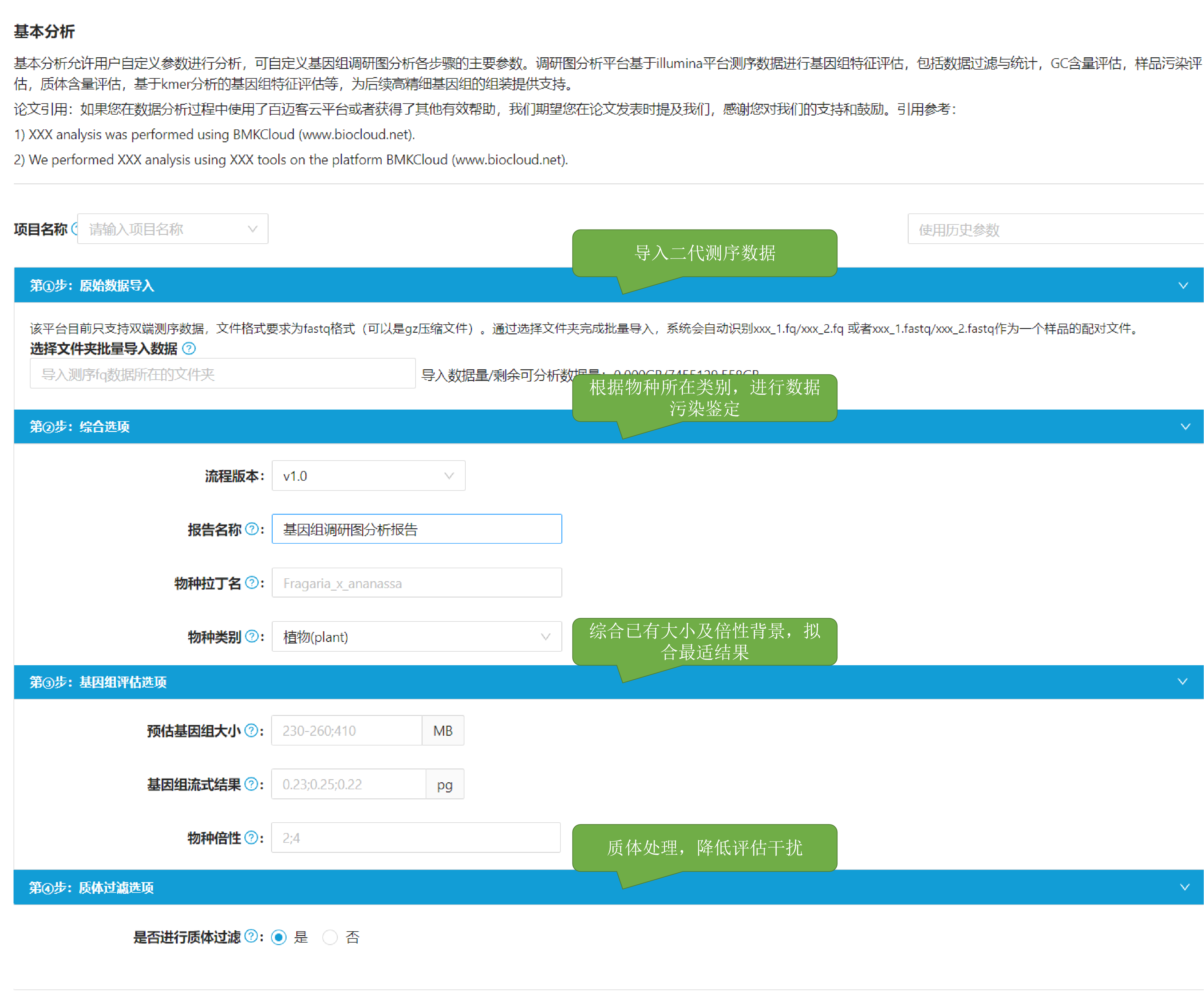 b.為了更好區(qū)分所分析項目,可自主填寫報告名稱和物種拉丁名(選填)。動植物材料選取過程中易受到微生物或其他生物污染,因此通過選擇分析物種所在類別,進行應(yīng)數(shù)據(jù)庫比對判斷污染情況。物種污染程度為材料可用性提供重要依據(jù)。