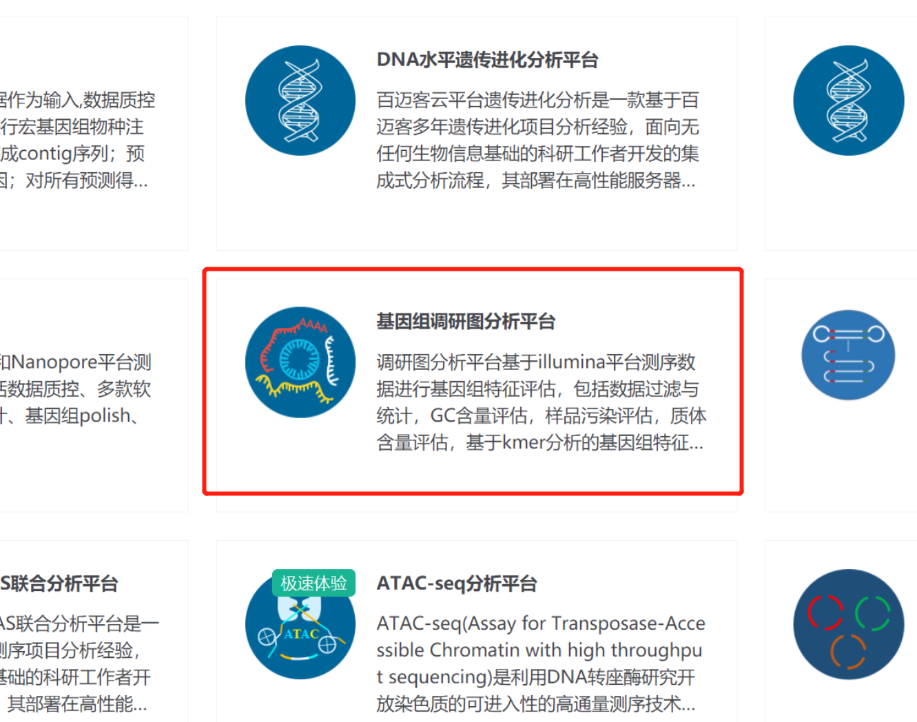 (1)從百邁客官方云平臺登錄即可找到基因組調(diào)研圖分析平臺APP界面。百邁客云平臺網(wǎng)址:http://www.biocloud.net/