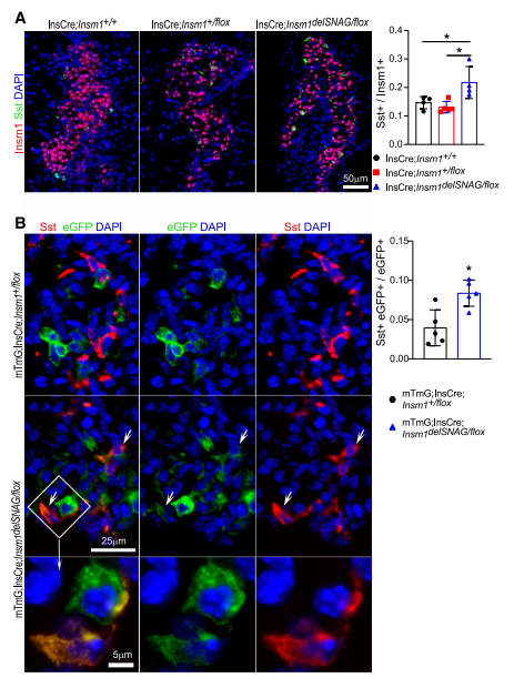 圖7.Insm1delSNAG突變小鼠中β細(xì)胞向δ細(xì)胞轉(zhuǎn)分化