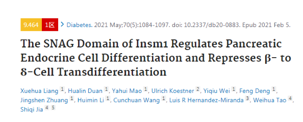 2021年5月,百邁客和暨南大學(xué)第一附屬醫(yī)院合作的文章“The SNAG Domain of Insm1 Regulates Pancreatic Endocrine Cell Differentiation and Represses β- to δ-Cell Transdifferentiation”見刊啦!發(fā)表在《Diabetes》(IF=9.464)。今天小編帶大家一起解讀一下該文章,看看具體做了些什么研究!
