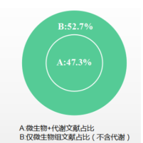 小編先在PubMed網站搜索了一下微生物組和代謝在2011-2020年的發(fā)文情況。以微生物組和代謝組為關鍵詞搜索文獻數量信息。從數據中我們可以看到,微生物和代謝相關文章在逐年增加,47.3%的微生物發(fā)表文獻中都包含代謝組,微生物組+代謝組研究已逐漸成為微生物研究中的重要多組學研究思路。