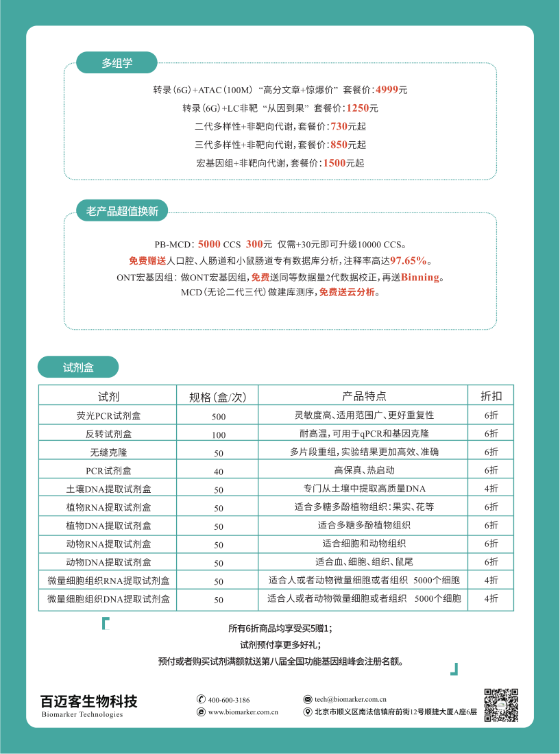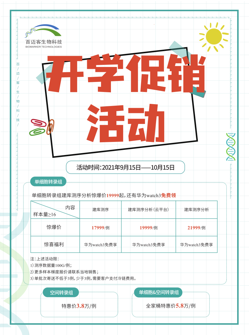 百邁客為您提供了最實(shí)惠的開學(xué)季促銷好禮,產(chǎn)品覆蓋二代微生物、三代微生物、微生物多組學(xué)以及單細(xì)胞系列產(chǎn)品,詳情活動(dòng)可見:百邁客醫(yī)學(xué)開學(xué)促銷活動(dòng),快快上車~