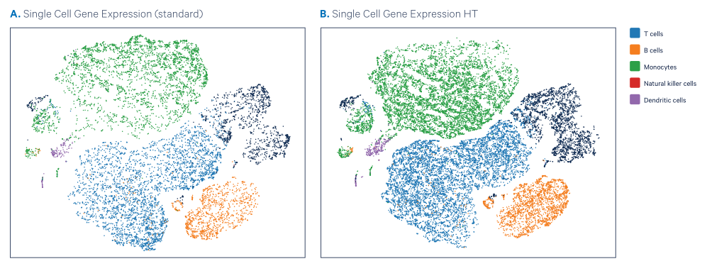 單細(xì)胞基因表達(dá)HT產(chǎn)生的數(shù)據(jù)可與標(biāo)準(zhǔn)分析的數(shù)據(jù)相比較,在每個(gè)細(xì)胞成本降低的情況下,細(xì)胞數(shù)量增加了一倍,更利于鑒定更多的細(xì)胞表型和分子調(diào)控機(jī)制。